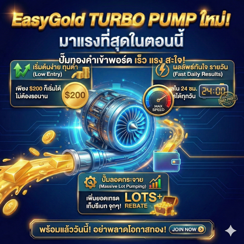 น้องใหม่ มาแรง แบบโหดจัดๆ EasyGold TURBO PUMP ผลงานดีที่สุดตอนนี้ เห็นผลไว วันต่อวัน พิเศษตอนนี้ ทุนเพียง $200 ใช้งานได้ ฟรี !